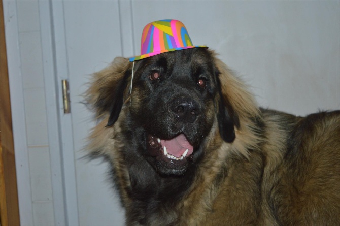 Voici Jumanji qui avait mis un joli petit chapeau, sur sa tête, pour son anniversaire, juste le temps de prendre la photo, car elle a vite préféré l'avoir dans la gueule...